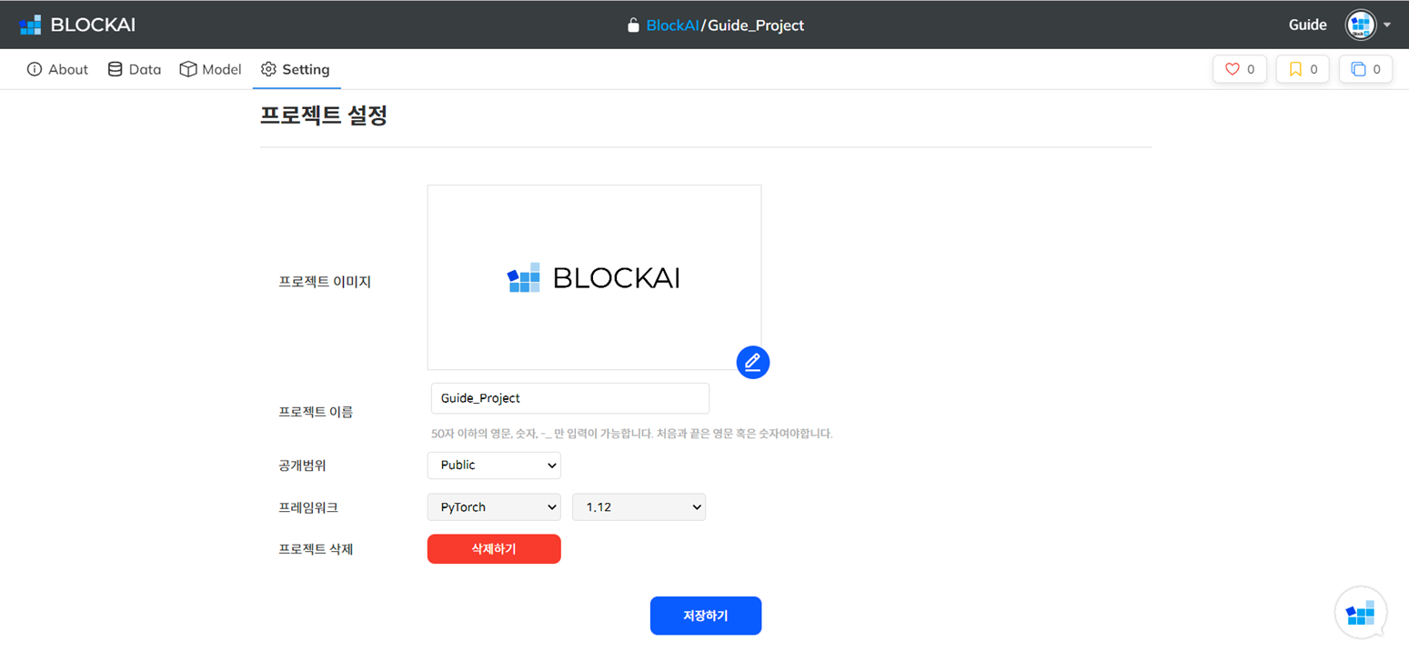 프로젝트 이미지, 이름 공개 범위를 수정할 수 있으며, 프로젝트 삭제를 할 수 있습니다.